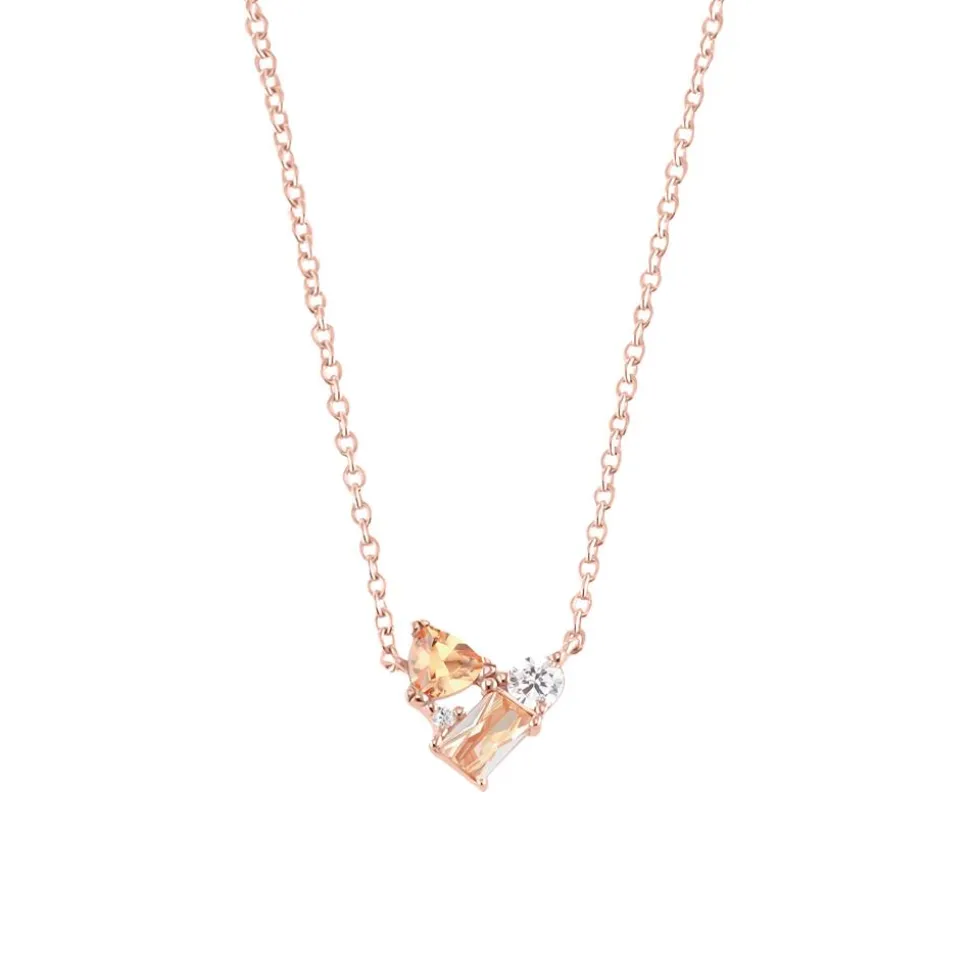 Absolut zeitlos – das ist diese Damenkette aus rosévergoldetem Sterlingsilber. Zwischen die filigranen Ankerkettenglieder ist ein Schmuckelement gearbeitet, welches aus unterschiedlich geformten Zirkonia (synth.) besteht, die in Weiß, Beige und Orange funkeln. Die Kette wird mit einem Karabiner geschlossen und kann in der Länge angepasst werden.