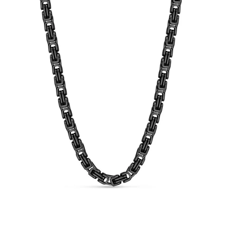 Absolut trendstark – das ist diese Herrenkette aus schwarz-beschichtetem Edelstahl. Sie besitzt eine Fantasie-Kettengliederung, kann in der Länge verstellt werden und wird mit einem Karabiner geschlossen.