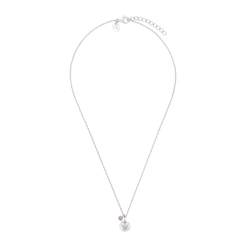 Ein Must-have für kleine Prinzessinnen – das ist diese Kinderkette mit Doppelankergliederung aus rhodiniertem 925er Silber. Sie besitzt einen runden Anhänger mit Cut-out in Form einer Krone und einen weiteren Anhänger mit rosafarbenem Zirkonia (synth.). Geschlossen wird die längenverstellbare Kette mit einem Karabiner.