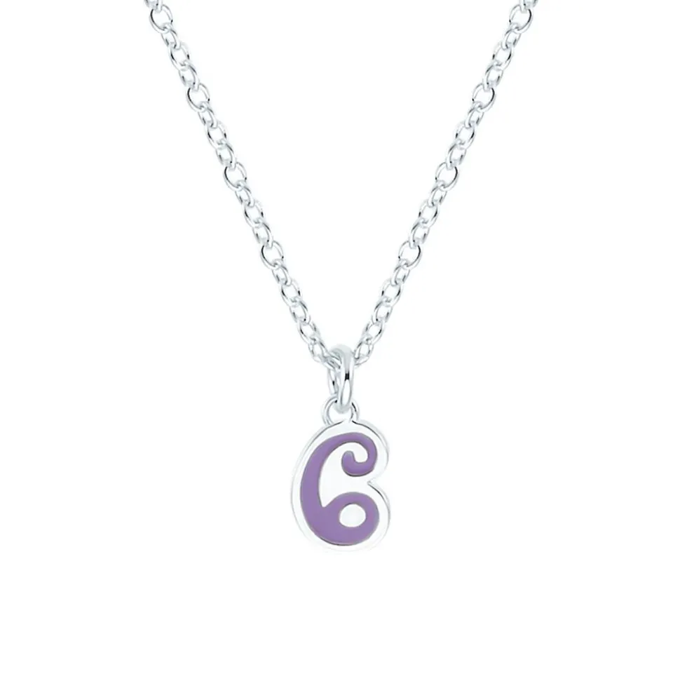 Ein niedliches Geburtstagsgeschenk – das ist diese Kinderkette aus rhodiniertem Sterlingsilber. Blickfang ist der Anhänger in Form der Zahl 6, welche mit fliederfarbener Emaille akzentuiert ist. Die Kette besitzt einen Karabinerverschluss und kann in der Länge verstellt werden.