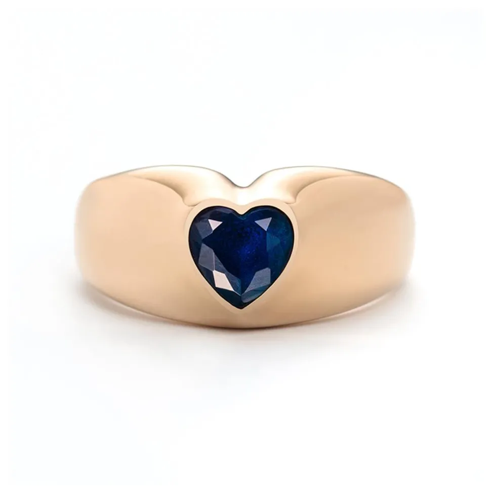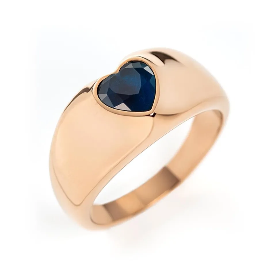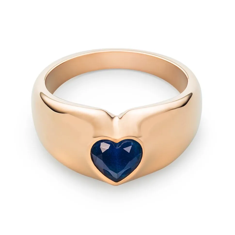 Dieser Ring für Damen aus rosévergoldetem recyceltem Edelstahl (MARINIUM® Ocean Steel) ist einfach niedlich. Er fasst einen facettierten blauen Zirkoniastein, der dem Ring das gewisse Etwas verleiht. Zudem besitzt er über dem Stein eine herzförmige Aussparung, die für eine ansprechende Form sorgt.