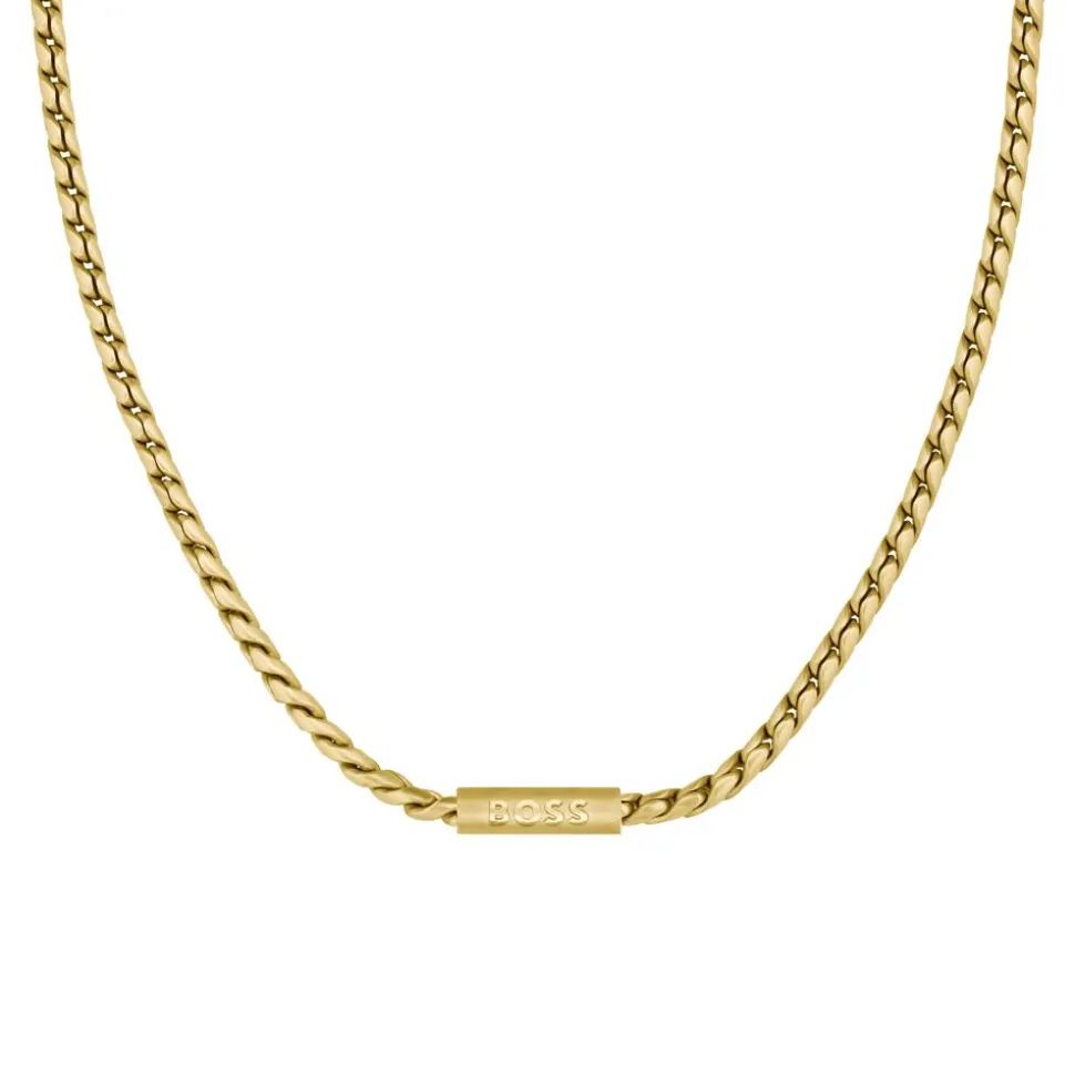 Ein absoluter Eyecatcher – das ist diese Kette für Herren. Sie besteht aus Edelstahl, der vergoldet wurde und weist fantasievoll gestaltete Kettenglieder auf. Das besondere Etwas bietet der Magnetverschluss, der vorne an der Kette zu finden ist. Dieser ist mattiert und zeigt den Markennamen.