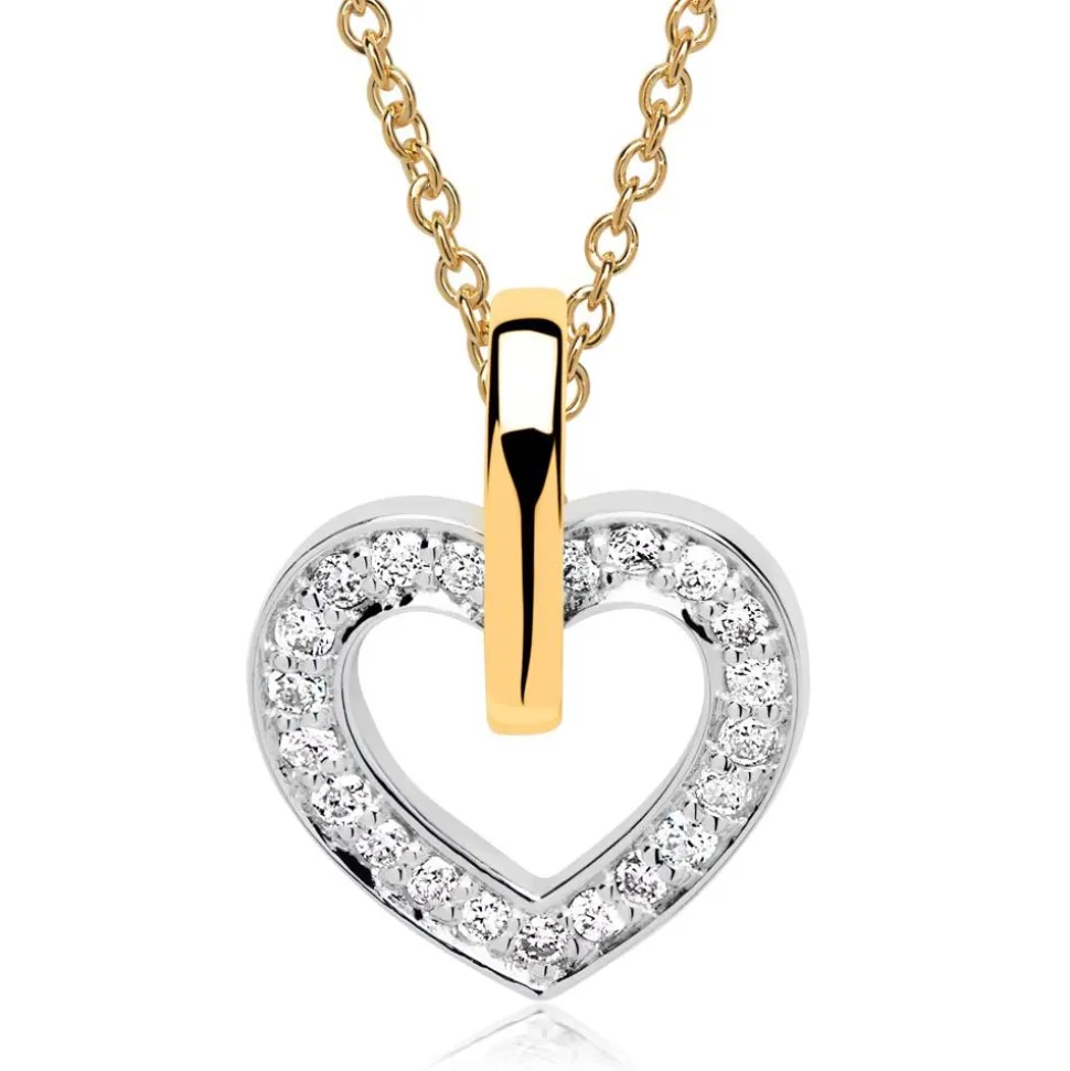 Gleich 21 Diamanten (ca. 0,10 ct.; Farbe: Top Wesselton; Reinheit: small inclusions) zieren die Herzform dieses Anhängers aus 585er Gold. Der weißgoldene Glanz, welcher die brillantgeschliffenen Diamanten umgibt, bildet einen ansprechenden Kontrast zu dem edlen Schimmer des Gelbgoldes. Der Anhänger ist rhodiniert und somit anlaufgeschützt, so dass Sie auch in vielen Jahren noch Freude an ihm haben werden. Wir legen sowohl auf höchste Qualitätsstandards als auch auf ethische Aspekte großen Wert. Daher prüfen wir die Schmuckstücke einzeln von Hand und beziehen die Diamanten ausschließlich aus konfliktfreien Quellen.
