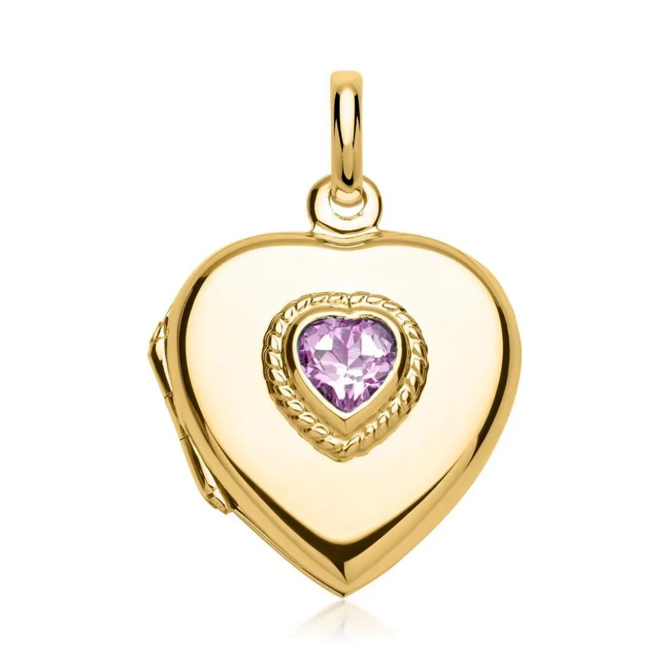 Edler Eyecatcher – goldglänzendes Herz-Medaillon mit Amethyst