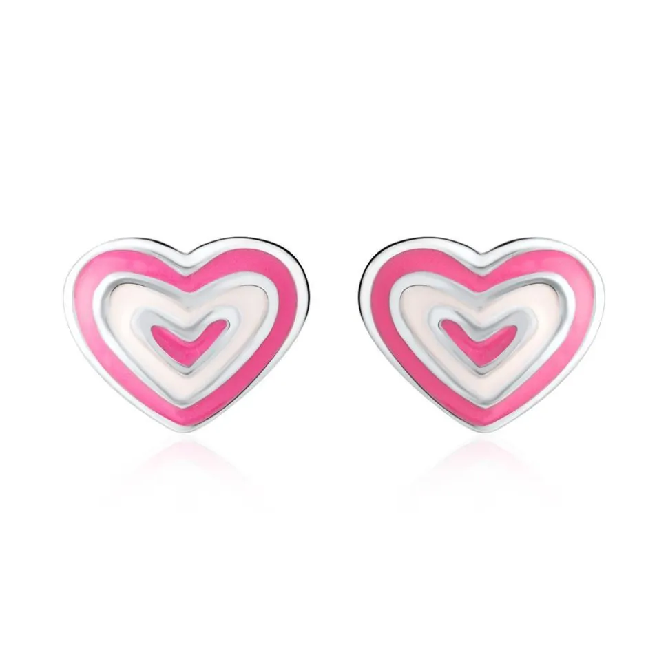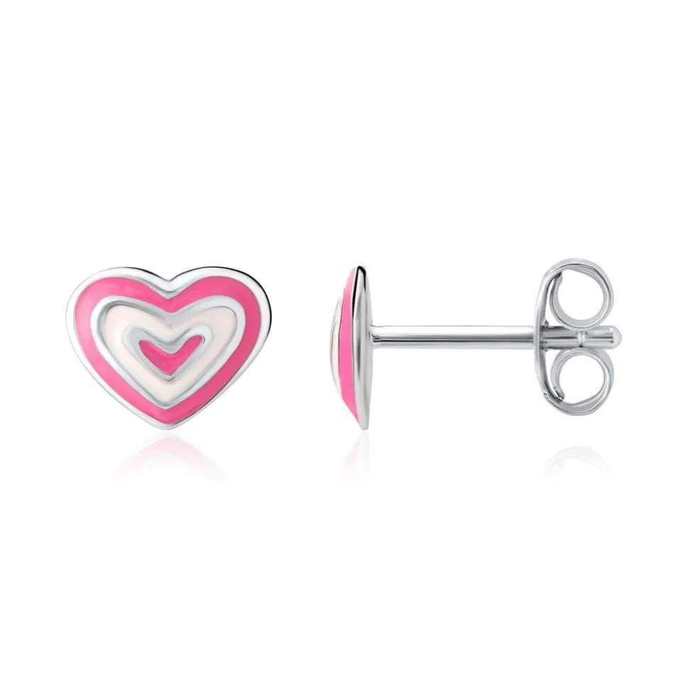 Zuckersüß – das sind diese Ohrstecker für Kinder. Sie bestehen aus 925er Silber, welches rhodiniert und somit anlaufgeschützt ist. Jeder Stecker besteht aus einem pink und weiß emaillierten Herz.