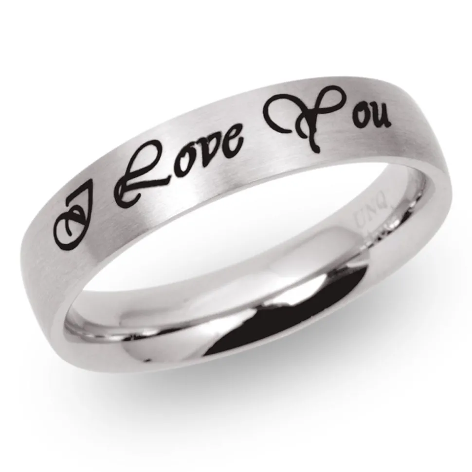Hochwertiger Edelstahlring der Marke Unique Steel in 5mm Breite (wahlweise auch in 7mm erhältlich). Der Ring ist von Innen bombiert (abgerundet) und daher angenehm zu tragen. Der Ring kann kostenlos wahlweise von Innen oder Aussen mit einer Lasergravur versehen werden.