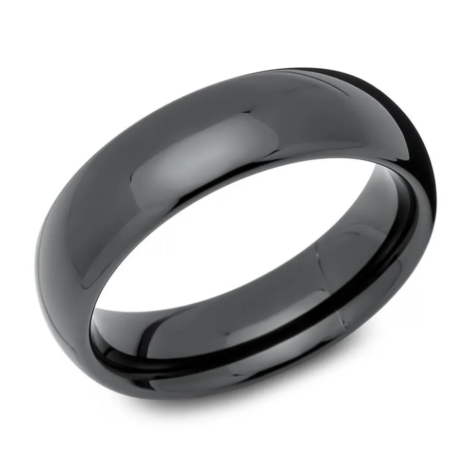 Exklusiver Tungstenring, 6mm breit, Oberfläche mit glänzender Ionenbeschichtung. Der Ring ist bombiert (von Innen abgerundet) und daher angenehm zu tragen.