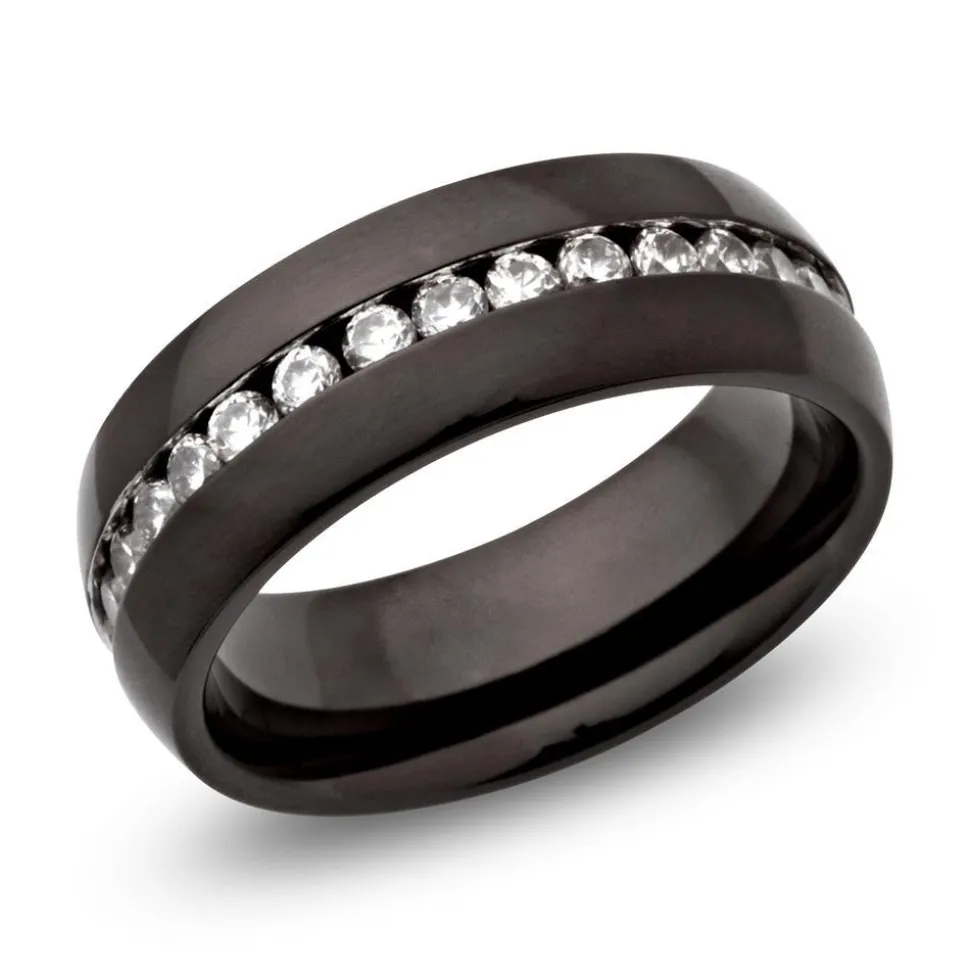 Trendiger Eyecatcher – schwarzer Edelstahlring mit Zirkonia