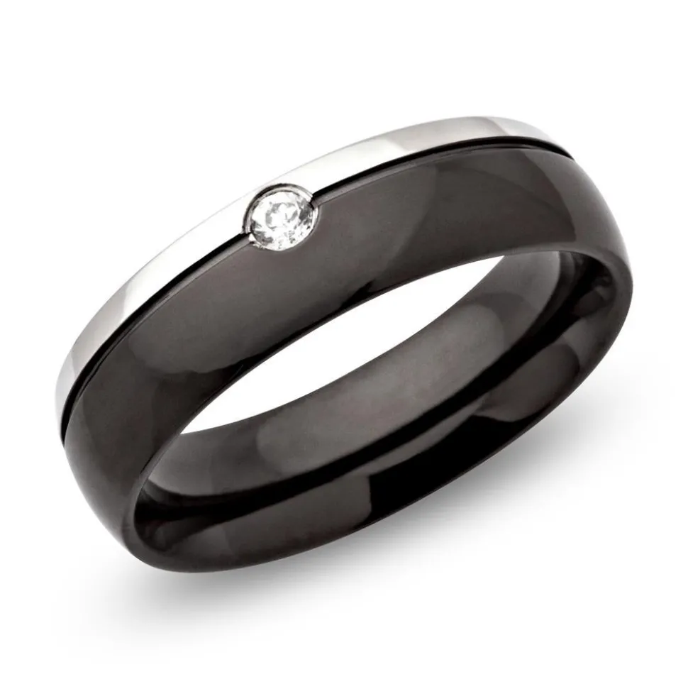 Absolut modern – teilgeschwärzter Edelstahlring mit Zirkonia