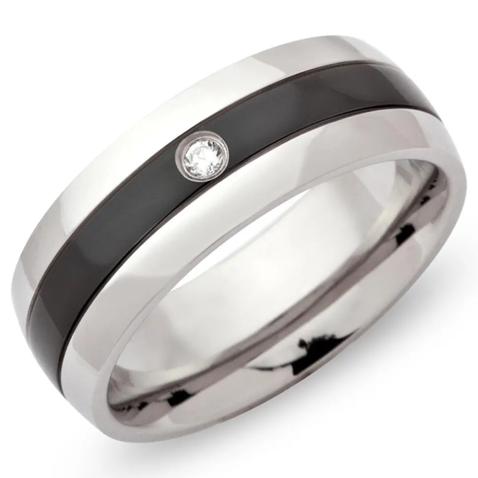 Gradlinig – teilgeschwärzter Edelstahlring mit Zirkonia