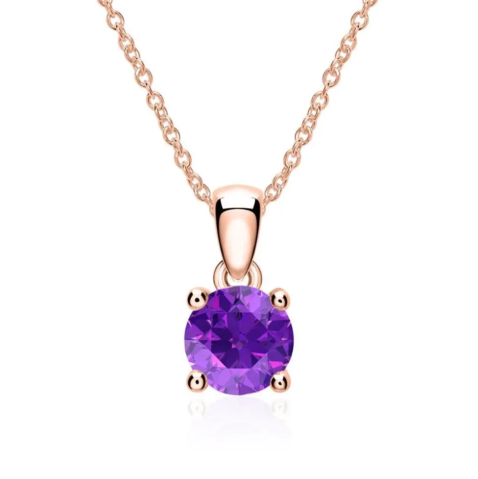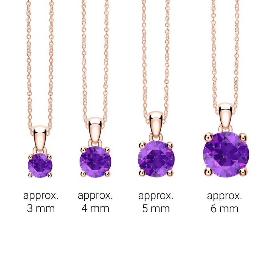 Ein wirkungsvoller Eyecatcher – das ist diese Halskette aus 14-karätigem Roségold. In der 4-Krappenfassung des Anhängers sitzt ein Amethyst (Qualität: AAA) im Brillantschliff. Dank der unterschiedlichen Steingrößen (-gewichte), die wir bei unseren Anhängern anbieten, kann man die für sich passende Größe wählen. Bitte hierzu das Auswahlfeld beachten. Die Kette wird mit einem Karabiner geschlossen.