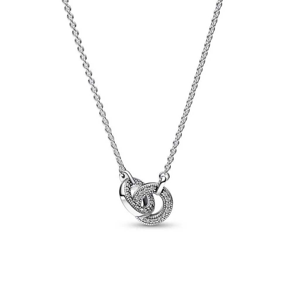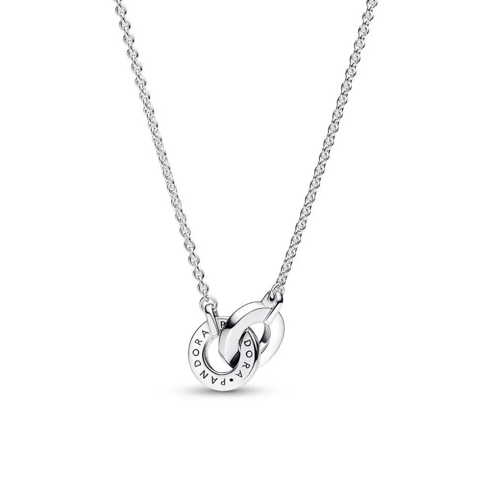Diese Halskette für Damen aus Sterlingsilber bezaubert mit zwei ineinanderliegenden Anhängern. Beide sind auf der Vorderseite mit traumhaften Zirkoniasteinen besetzt. Einer weist zusätzlich auf der Rückseite den Schriftzug „PANDORA“ auf. Durch die Zwischenösen, in die der Karabiner eingehakt werden kann, ist die Kette in der Länge verstellbar.