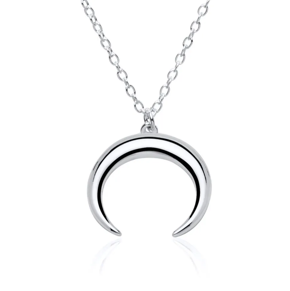 Diese Kette begeistert mit ihrem absolut trendigen Halbmond-Design und lässt sich mit weiteren Ketten kombinieren, so dass ein moderner Layerlook entsteht. Die Halskette besteht aus 925er Silber, welches rhodiniert und somit anlaufgeschützt ist. Geschlossen wird sie mit einem Federring und sie ist in der Länge um ca. 3 cm regulierbar.