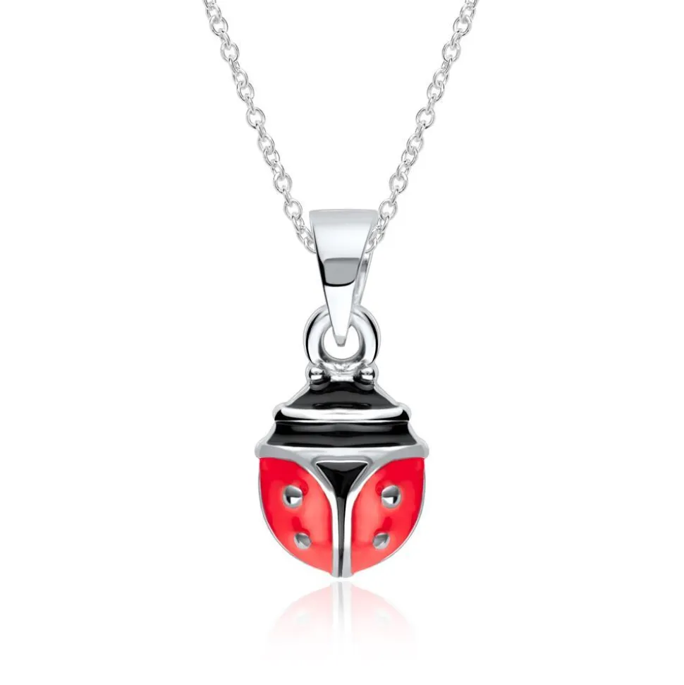 Diese Kette ist mit ihrem Anhänger ein niedlicher kleiner Glücksbringer! Dieser besitzt die Form eines Marienkäfers und beides besteht aus 925er Silber, welches rhodiniert und somit anlaufgeschützt ist. Der Marienkäfer ist farbgetreu mit schwarzer und roter Emaillie beschichtet. Die Kette hat einen Karabinerverschluss.