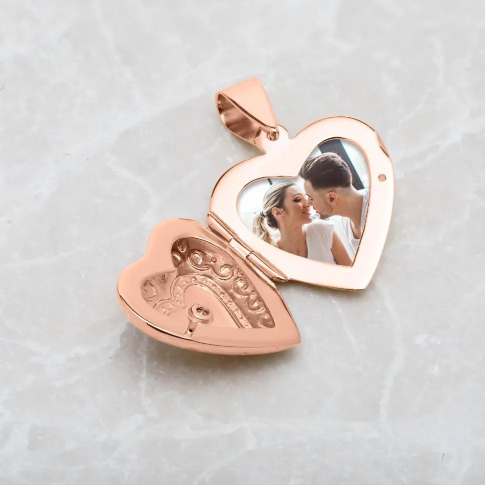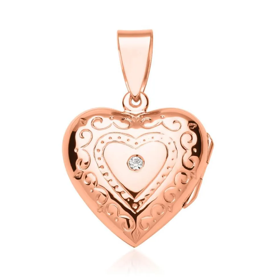 Begeistert auf ganzer Linie – Kette mit gravierbarem MedaillonBlickfang dieser bezaubernden Schmuckkreation aus Roségold-beschichtetem Sterlingsilber ist das Medaillon. Es besitzt kunstvolle herzförmige sowie ornamentale Verzierungen auf der Vorderseite. Die Mitte wird zudem von einem weiß-funkelnden Zirkoniastein geziert. Die filigrane Ankerkette mit klassischem Karabiner rundet die Komposition gekonnt ab. Wenn Sie möchten, versehen unsere erfahrenen Graveure die Rückseite des Medaillons mit Ihrem persönlichen Wunschtext. Das Medaillon ist zudem ein perfekter Geheimnisbewahrer, denn darin ist sogar noch Platz für eine für Sie wichtige Botschaft oder ein Foto.