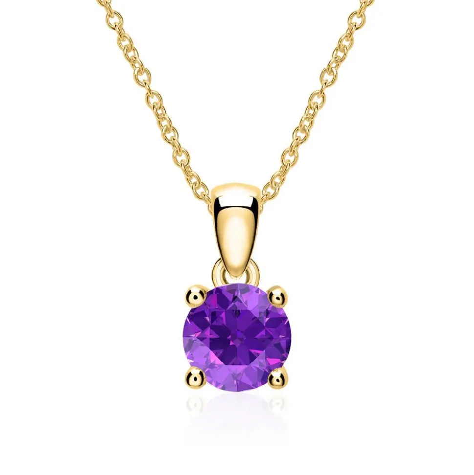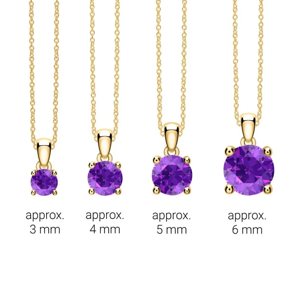 Ein exklusiver Farbakzent – das ist diese Halskette. Sie ist aus 585er Gold gefertigt und der Anhänger wird von einem krappengefassten Amethyst (Qualität: AAA) im Brillantschliff geziert. Den Anhänger gibt es mit verschiedenen Amethystgrößen (-gewichten). Bitte auswählen.