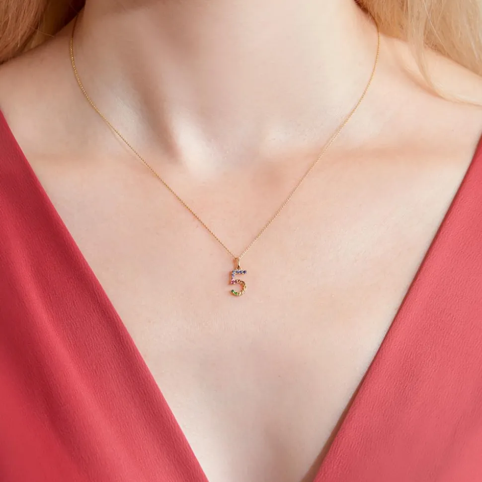 Perfekt für individuelle Styles eignet sich dieser Anhänger aus 14-karätigem Gold. Er hat die Form der Zahl 5 und ist mit bunten Saphiren (gesamt ca. 0,18 ct.) im Farbverlauf besetzt. Mit diesem oder weiteren Zahlenanhängern kann ein Schmuckstück mit der persönlichen Glückszahl oder einem Geburtsdatum zusammengestellt werden.