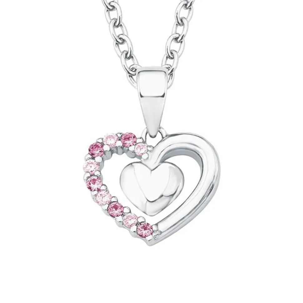Diese Kette begeistert mit ihrem mädchenhaften Funkeln! Sie ist aus rhodiniertem 925er Silber gefertigt und wird von einem Herzanhänger geziert. Dieser besteht aus einem silbernen Herzchen, welches von einer Herzform gerahmt wird, welche zur Hälfte mit pinken und rosafarbenen Zirkonia besetzt ist. Die filigrane Ankerkette hat einen Karabiner als Verschluss und kann in der Länge reguliert werden.