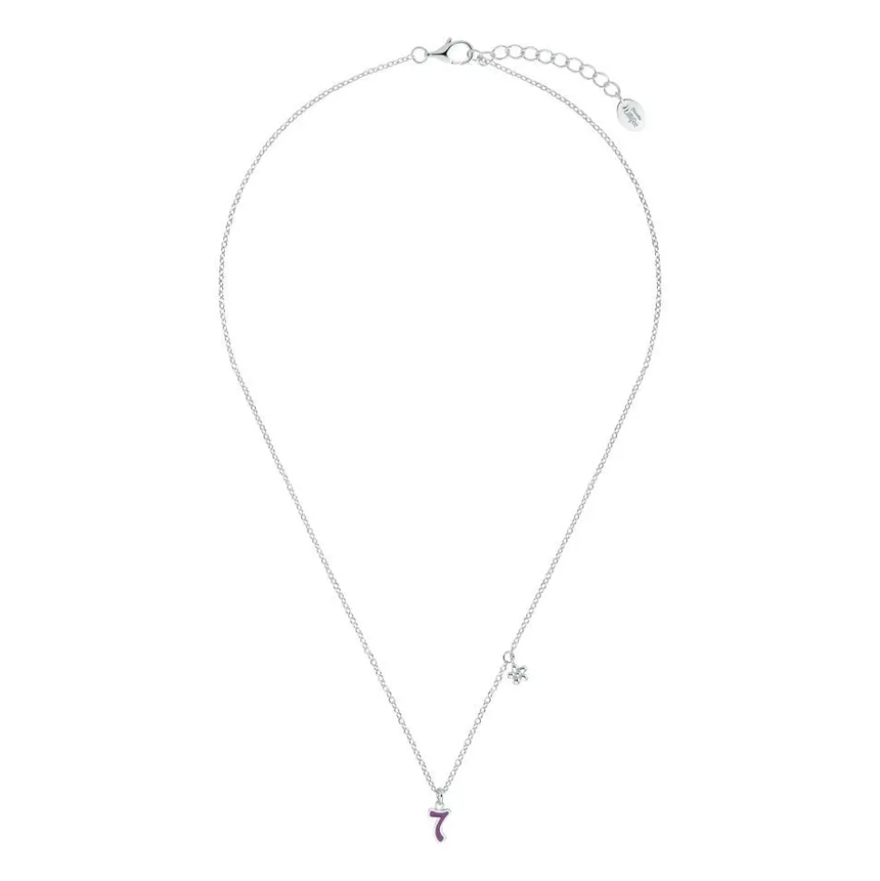 Mit ihrem bezaubernden Design eignet sich diese Kette perfekt als Geschenkidee! Sie besteht aus Sterlingsilber, welches durch die Rhodinierung anlaufgeschützt ist. Sie besitzt als Anhänger die Zahl 7, welche mit lilafarbener Emaille hervorgehoben wird. Die längenverstellbare Ankerkette hat als Verschluss einen Karabiner.