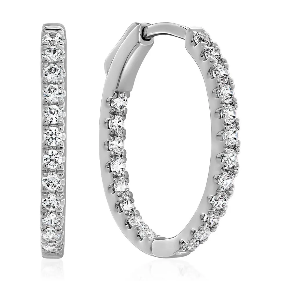 Diese Ohrringe für Damen begeistern mit ihrem klassischen Design und den hochwertigen Materialien! Sie sind wahlweise aus 585er oder 750er Weißgold oder 950er Platin gefertigt. Bitte die bevorzugte Legierung im Drop-down-Feld auswählen. Absoluter Blickfang ist der funkelnde Steinbesatz: Insgesamt zieren 40 laborgezüchtete Diamanten im Brillantschliff (ca. 0,73 ct.; Farbe: D-F; Reinheit: VVS-VS) sowohl die vordere Außenseite als auch die hintere Innenseite der Creolen. Unsere lab-grown Diamanten bestehen, wie natürliche Diamanten, aus Kohlenstoff und besitzen auch sonst alle Eigenschaften eines abgebauten Diamanten, sind aber ressourcenschonender. Der Ohrschmuck verfügt über ein Brilladia-Zertifikat.