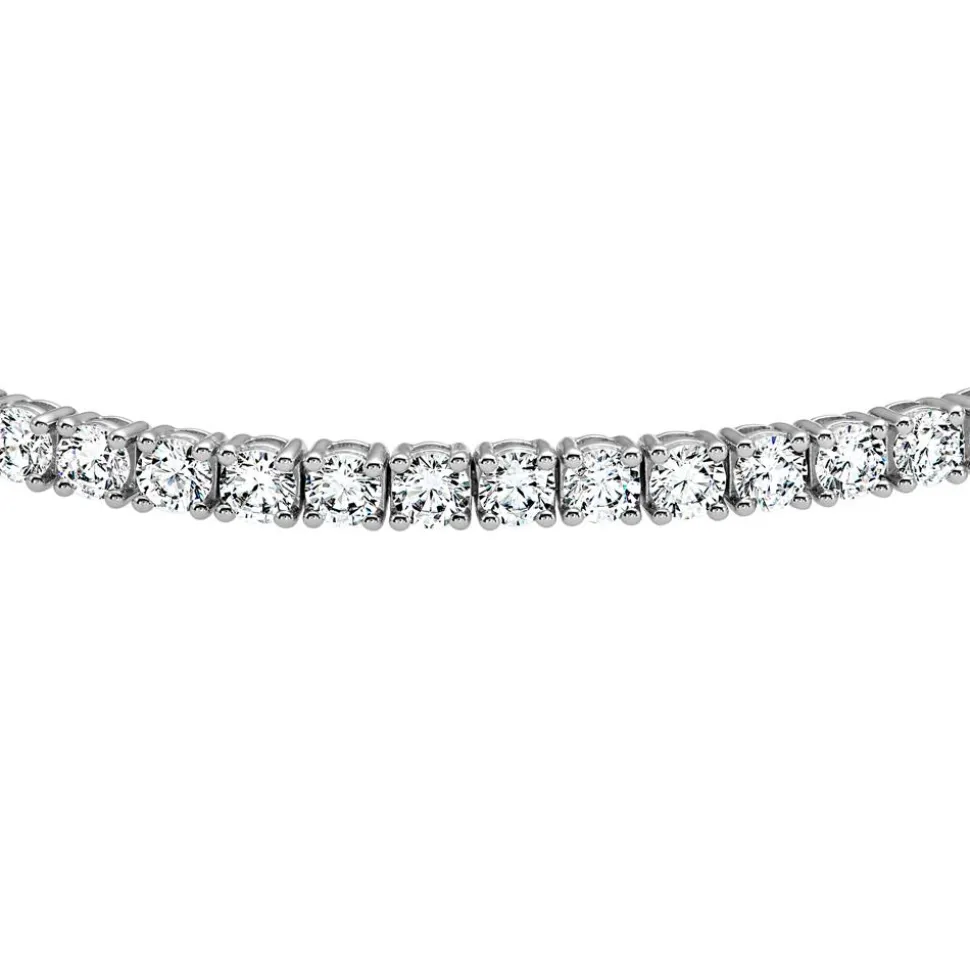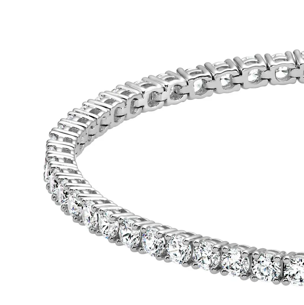 Für Exklusivität steht dieses Tennisarmband für Damen. Das Armband ist in verschiedenen Legierungen verfügbar (14 Karat/18 Karat Weißgold oder 950er Platin). Mithilfe des Drop-down-Feldes lässt sich die gewünschte Legierung auswählen. Die 62 dicht aneinandergereihten lab-grown Diamanten verleihen dem Armband sein umwerfendes Funkeln. Die 62 Brillanten (ca. 5,01 ct. gesamt) stammen aus dem Labor und bestehen aus 100 % Kohlenstoff. Ihre Härte und Brillanz ist identisch mit der von natürlich vorkommenden Diamanten. Mit der Farbe (D-F) und einer Reinheit aus der Kategorie (VVS-VS) bestechen die lab-grown Diamanten zudem mit einer hervorragenden Qualität. Auskunft über alle wichtigen Merkmale der Steine liefert das Brilladia-Zertifikat. Damit das Armband sicher am Handgelenk getragen werden kann, besitzt es eine Sicherheitsacht am Clipverschluss.