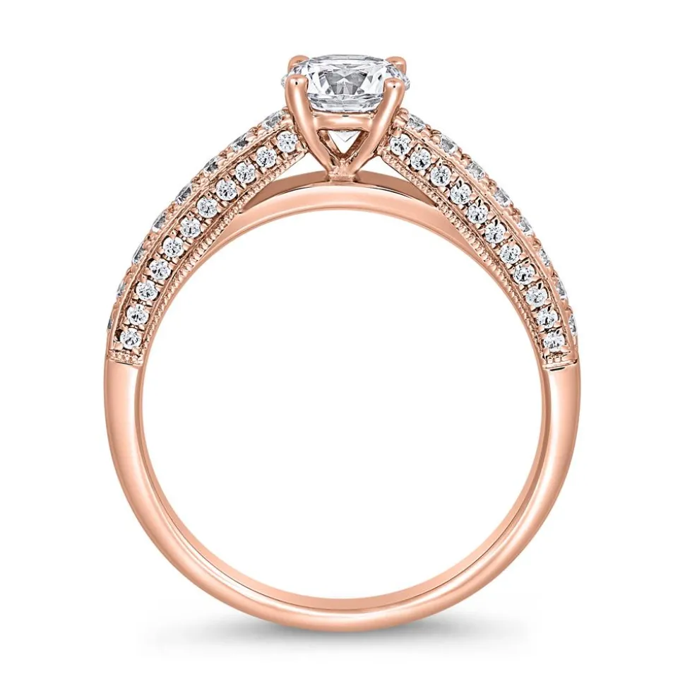Dieser Damenring aus Roségold besticht mit seinem ästhetischen Design. Er besitzt ein kantiges Profil und wird in der Mitte von einem funkelnden lab-grown Brillanten geziert (ca. 0,50 ct., E/VS). Der Diamant befindet sich in einer Chatonfassung und wird in der vorderen Hälfte des Rings von weiteren kleinen lab-grown Diamanten begleitet. Diese sind auf der Oberseite und an den Seiten des Rings eingelassen (60 Diamanten mit insgesamt ca. 0,35 ct., D-F/VVS-VS). Bei den Diamanten handelt es sich um Labordiamanten, die mithilfe eines innovativen Verfahren hergestellt wurden und sich in ihren wertbestimmenden Eigenschaften (Material, Härte, Brillanz) nicht von natürlichen Diamanten unterscheiden. Einen Nachweis über alle wesentlichen Merkmale liefert zudem das IGI-Zertifikat des Hauptdiamanten sowie das Brilladia-Zertifikat. Der Ring ist in 585er oder 750er Roségold erhältlich, das über die Drop-down-Liste ausgewählt werden kann. Gerne fügen unsere professionellen Graveure noch eine Wunschgravur hinzu.