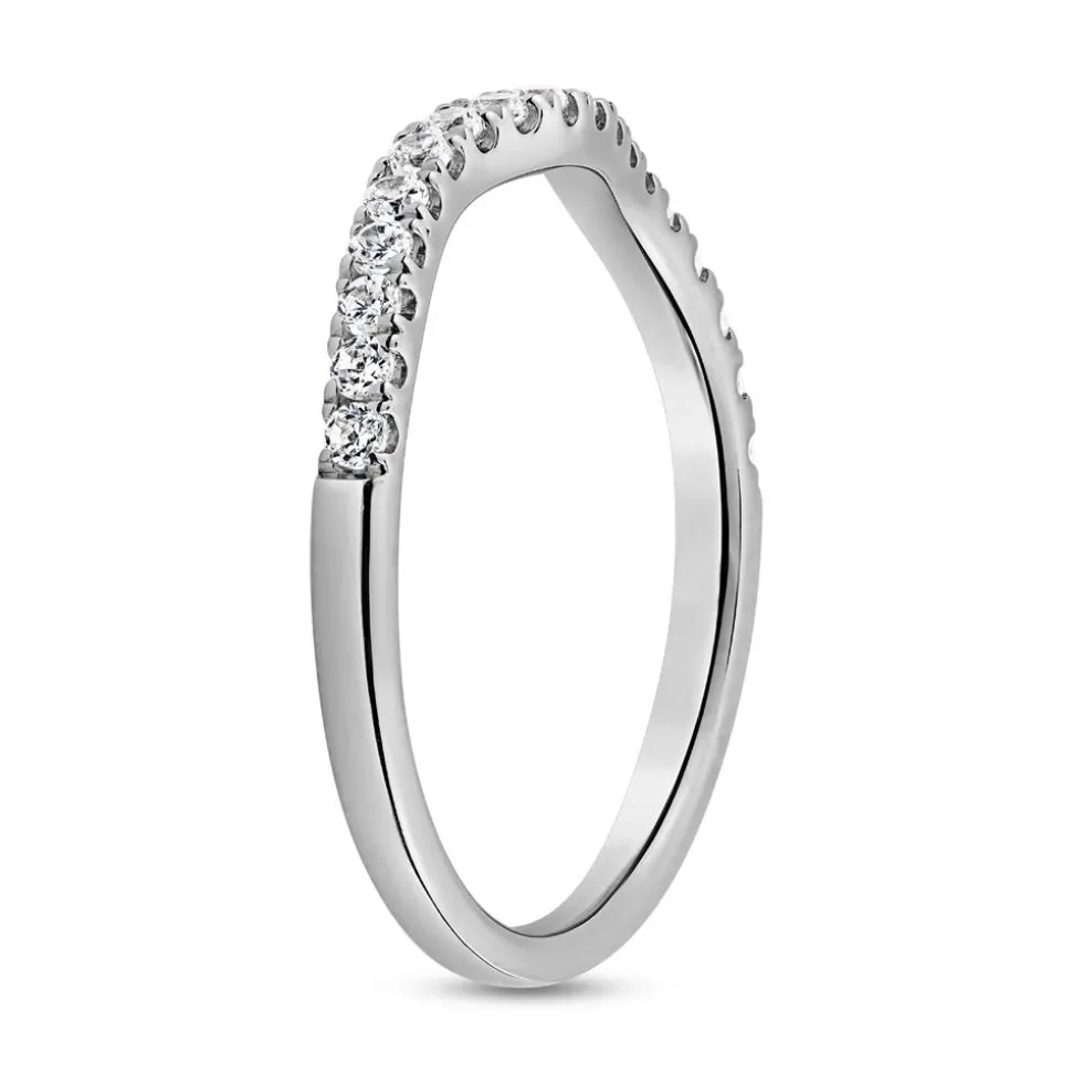 Eine bezaubernde Ringkreation – das ist dieser Damenring aus Weißgold (585er/750er) oder 950er Platin. Sein geschwungenes Wellen-Design wird durch 18 strahlende, im Labor entstandene Brillanten begleitet. Die lab-grown Diamanten sind auf der vorderen Hälfte des Rings platziert und werden von zarten Krappen sicher gehalten. Mit einem Gesamtgewicht von ca. 0,27 ct. strahlen die Diamanten in der Farbe D-F und der Reinheit VVS-VS. Ihre Härte und Brillanz steht der von herkömmlichen Diamanten in nichts nach, was sie zu einer nachhaltigen Alternative macht. Die Legierung lässt sich ganz bequem über das Drop-down-Menü auswählen. Für eine persönliche Note kann die Innenseite graviert werden.