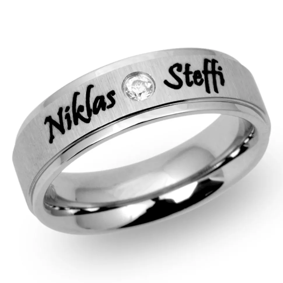 Zeitlos – Gravurring aus Edelstahl mit Zirkonia