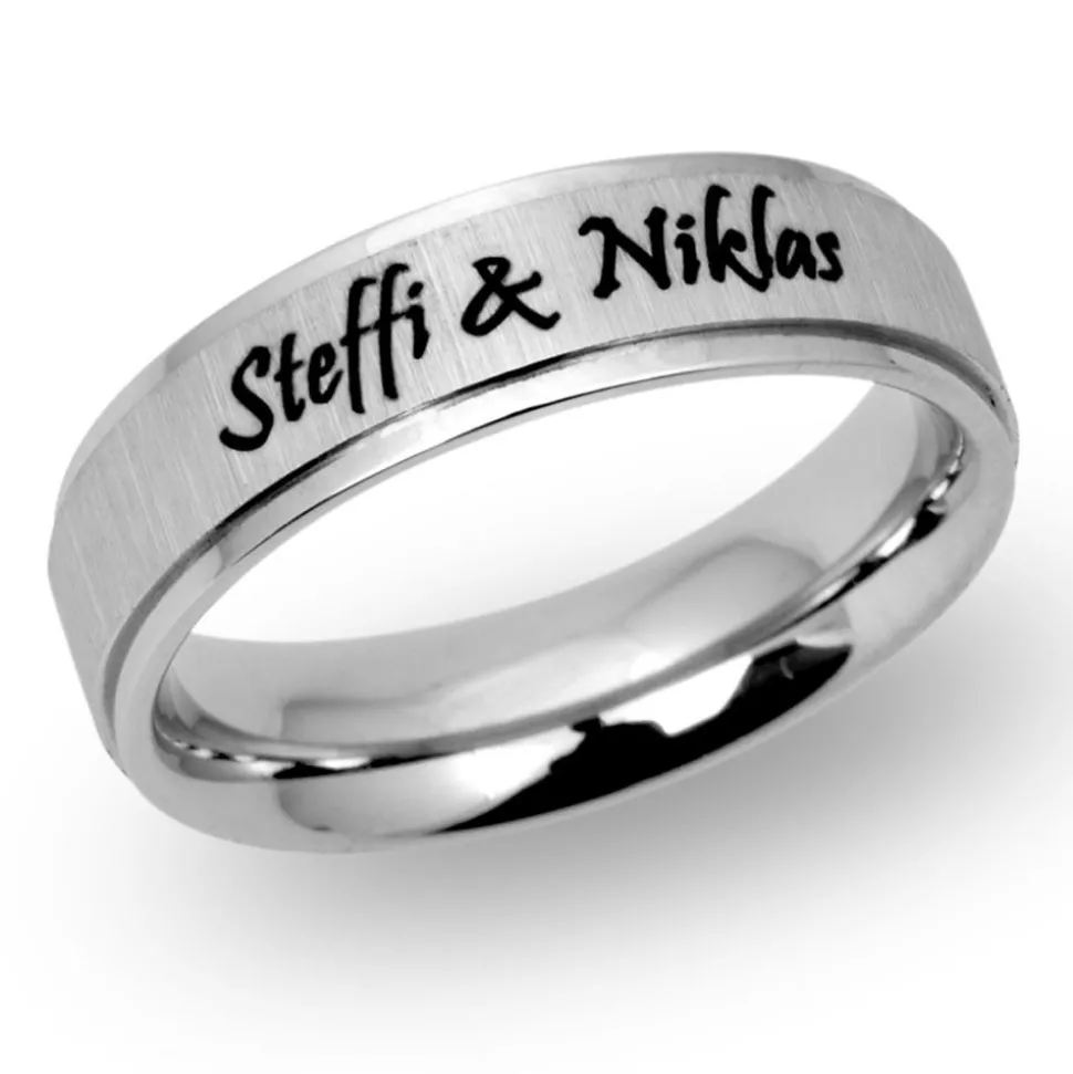 Lässig und elegant zugleich – Gravurring aus teilmattiertem Edelstahl