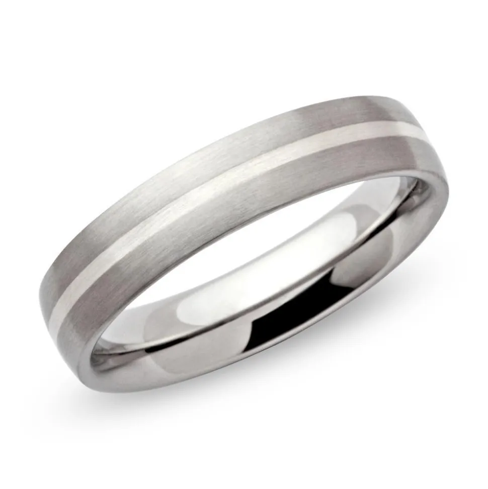 Hochwertiger Edelstahlring der Marke Unique Steel in 5mm Breite, die Oberfläche ist matt und mit einer Einlage aus 925 Silber versehen. Der Ring kann gegen einen Aufpreis von Innen graviert werden.