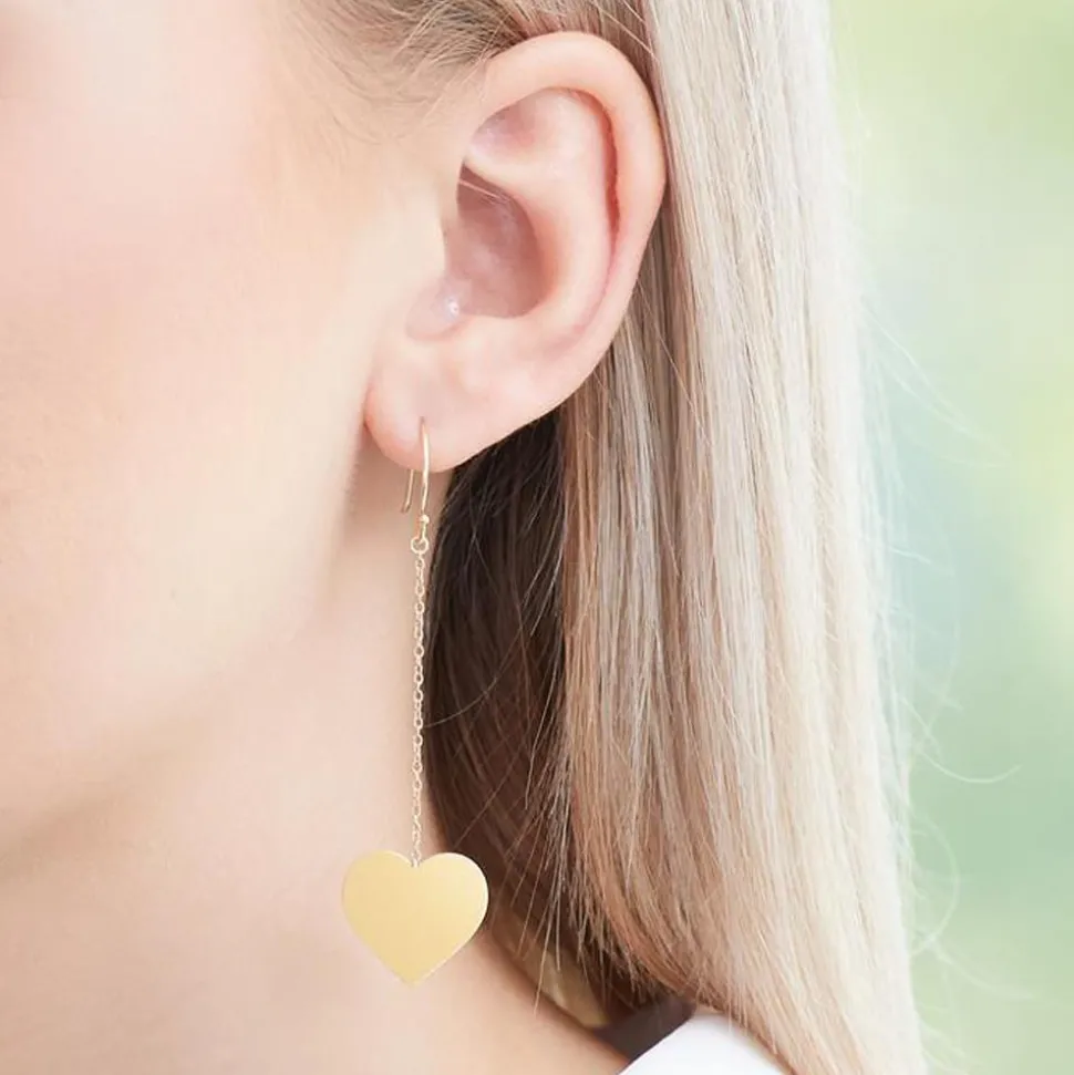 Der edle Glanz, das liebevolle Design und die Möglichkeit einer Gravur machen diese Ohrhänger zu einem absoluten Must-have. Sie bestehen aus Sterlingsilber, welches mit einer Vergoldung versehen wurde. Jeder Ohrhänger wird von einem Herzen geziert, das sowohl auf der Vorder- als auch auf der Rückseite graviert werden kann.