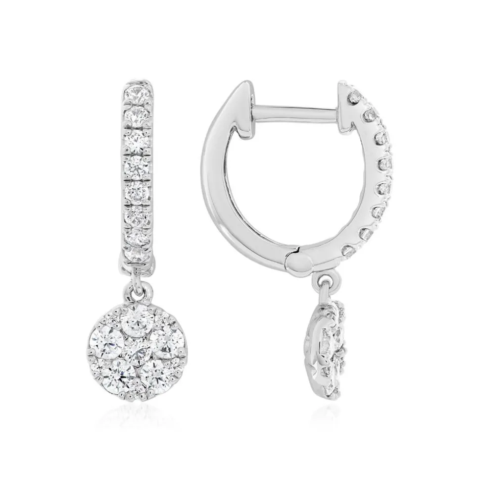 Elegante Klassiker – das sind diese Ohrringe für Damen. Sie sind wahlweise aus 585er oder 750er Weißgold oder 950er Platin gefertigt. Bitte das gewünschte Material im Drop-down-Feld wählen. Jede Creole wird jeweils im vorderen Teil und am Anhänger von brillantgeschliffenen Diamanten (insgesamt 38; ca. 0,61 ct.; Farbe: TW; Reinheit: SI) geziert. Neben höchsten Qualitätsstandards achten wir auch auf ethische Aspekte. Deshalb stammen unsere Diamanten ausschließlich aus konfliktfreien Quellen.