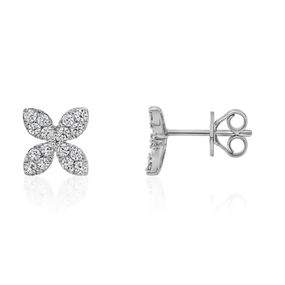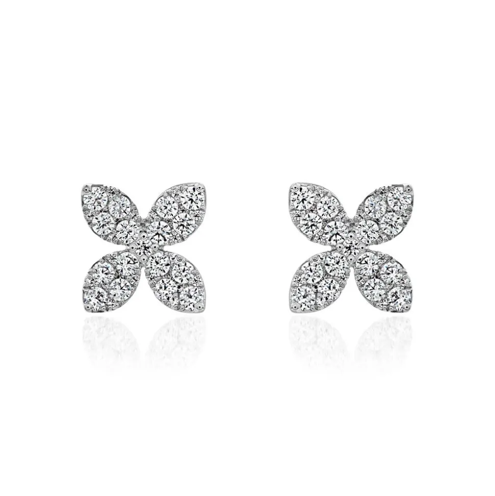Bezaubernde Eyecatcher – das sind diese Ohrstecker, die wahlweise in 585er oder 750er Weißgold oder 950er Platin erhältlich sind. Bitte das gewünschte Material im Drop-down-Feld wählen. Jeder der blütenförmigen Stecker wird von brillantgeschliffenen Diamanten (insgesamt 82; ca. 0,72 ct.) geziert. Die Farbe dieser fällt in die Kategorie Top Wesselton, die Reinheit ist mit SI klassifiziert und sie stammen selbstverständlich aus konfliktfreien Quellen.