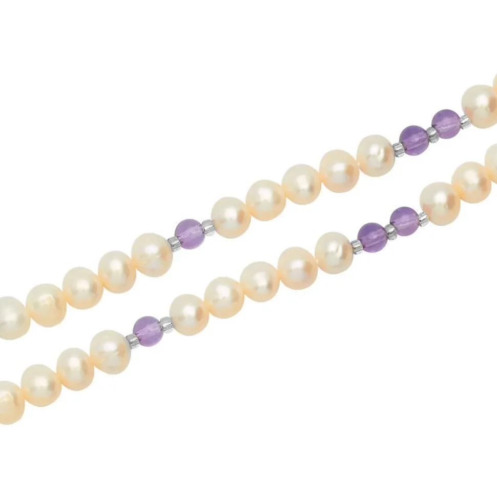 Klassisch und raffiniert zugleich – Perlenkette mit eingearbeiteten Amethysten