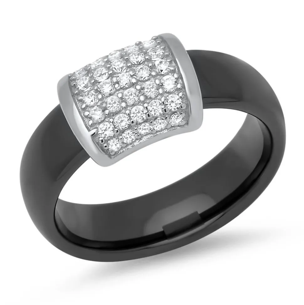 Moderner Blickfang – Ring aus schwarzer Keramik mit Zirkonia