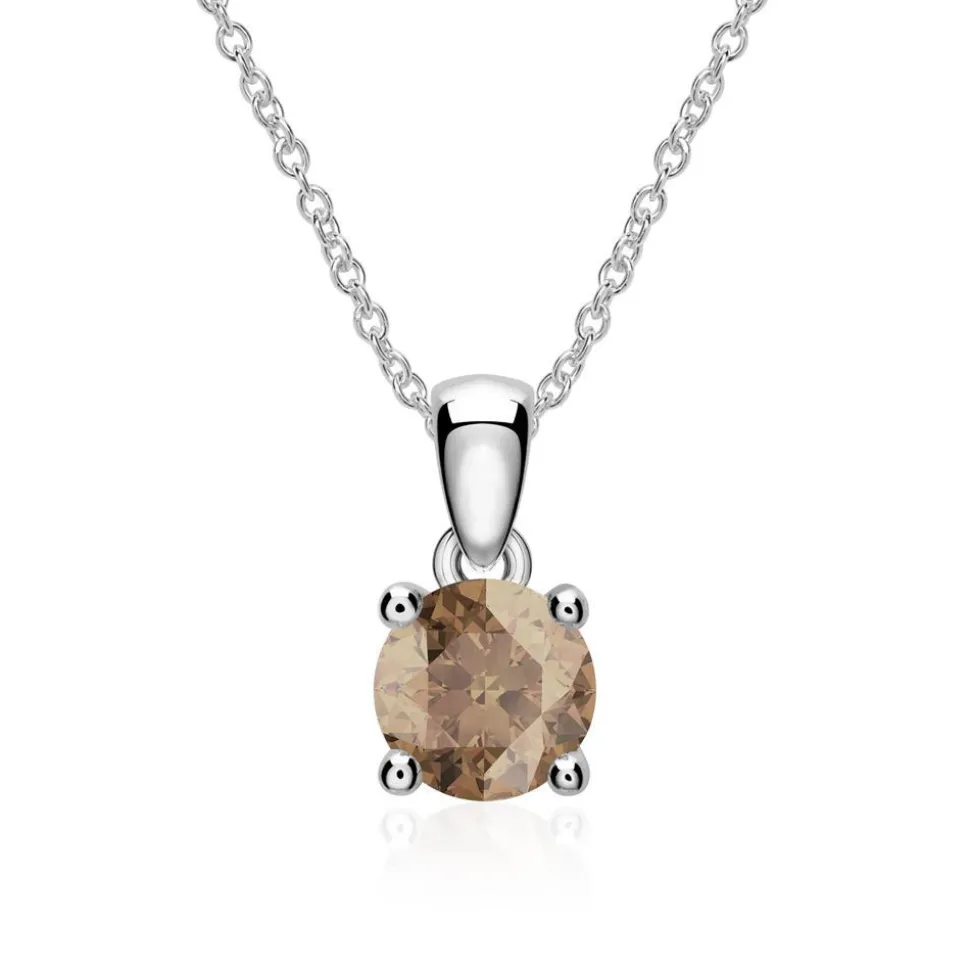 Das zeitlose Design dieses Kettenanhängers begeistert. Der Anhänger ist aus 14-karätigem Weißgold gefertigt und mit einem brillantgeschliffenen Rauchquarz besetzt, der von einer 4-Krappenfassung gehalten wird. Wir führen unterschiedliche Steingrößen (-gewichte). Bitte die gewünschte Größe (das gewünschte Gewicht) auswählen.