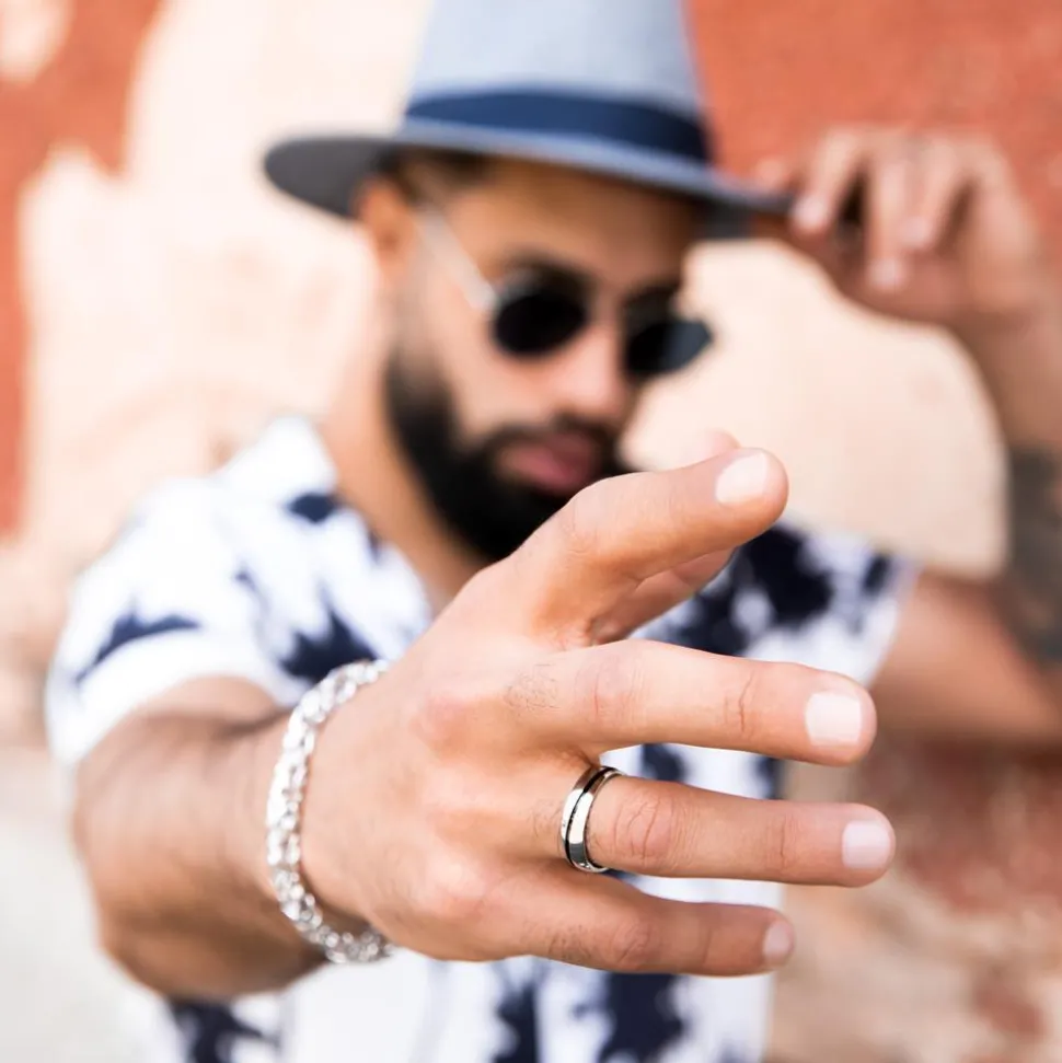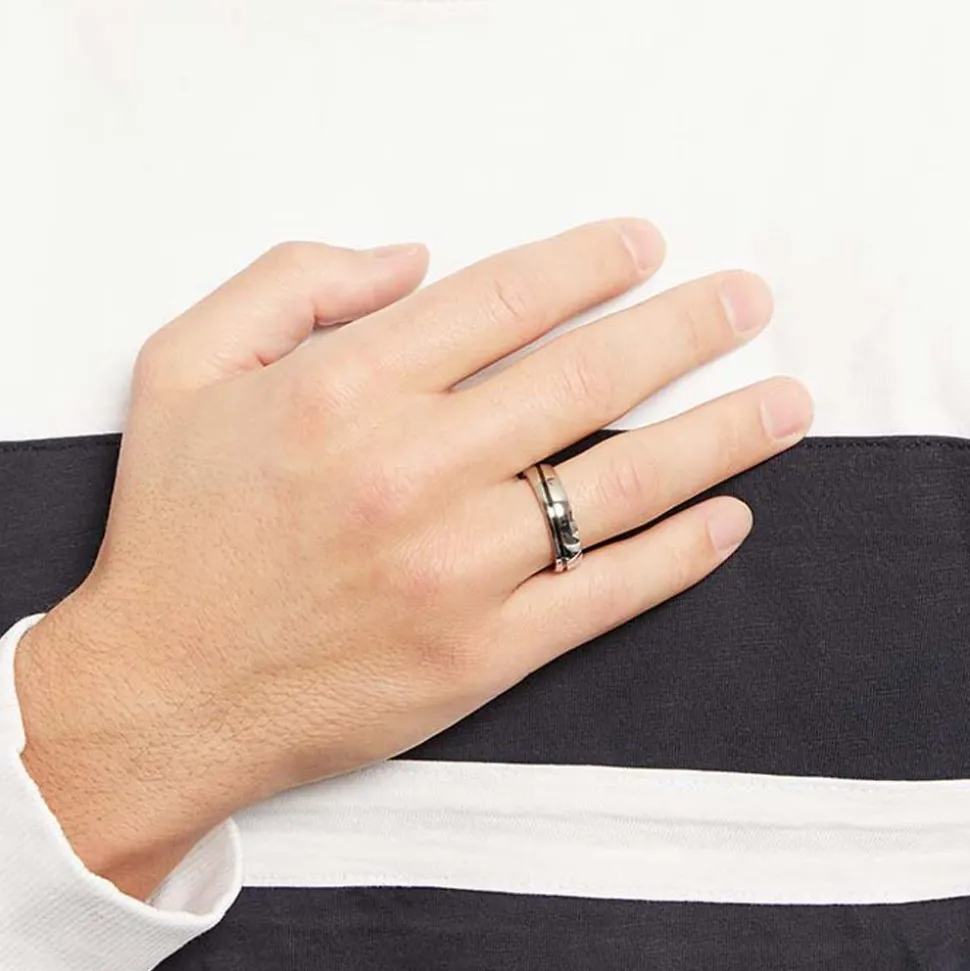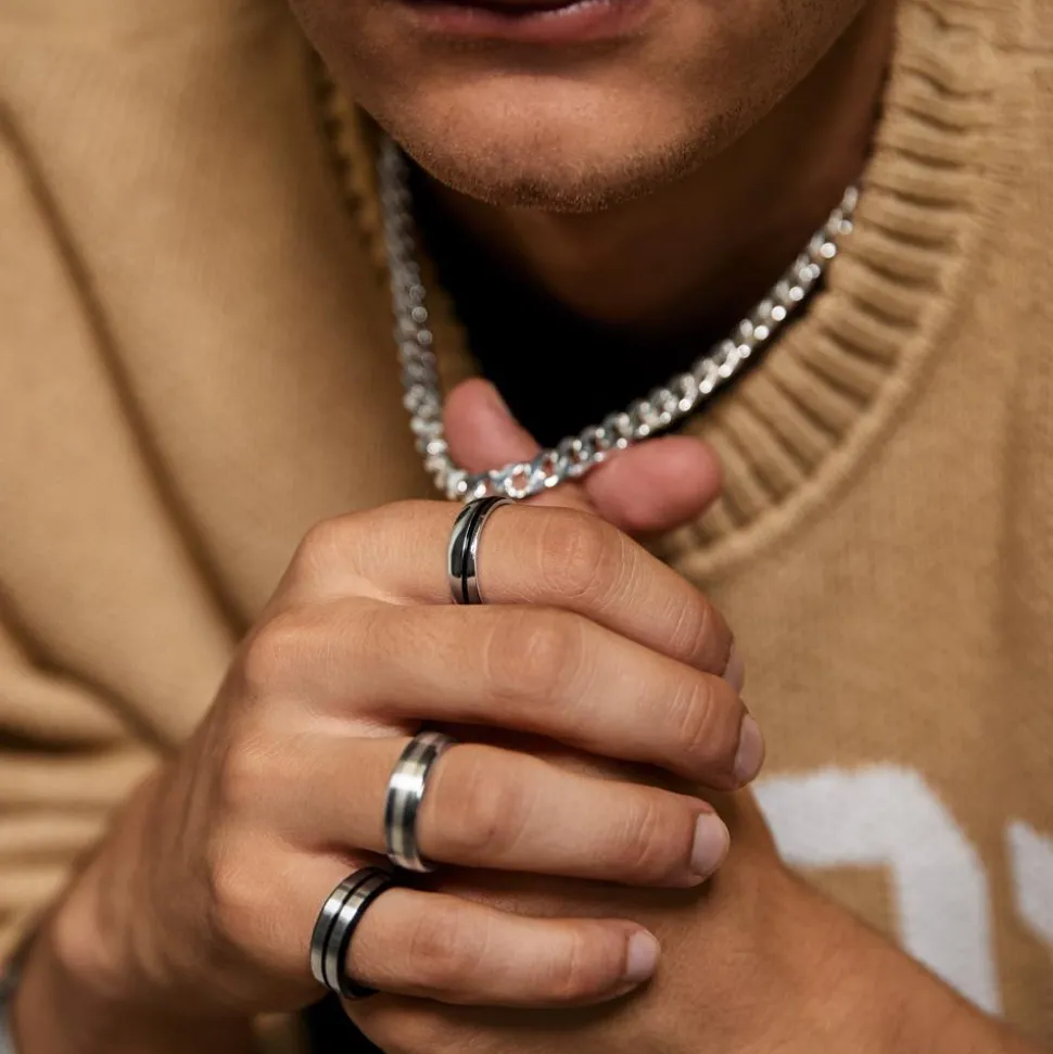 Lässig – Edelstahlring mit schwarzem Akzent