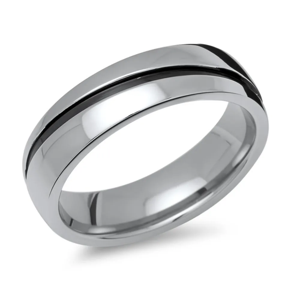 Edelstahlring für Herren mit polierter Oberfläche. Zusätzlich wird der Ring von einer schwarz gefärbten Rille geziert. Sie können den Ring auf Wunsch mit einer individuellen Innengravur versehen, dabei haben Sie die Wahl zwischen einer dezenten Diamantgravur sowie einer besonders hochwertigen Lasergravur.