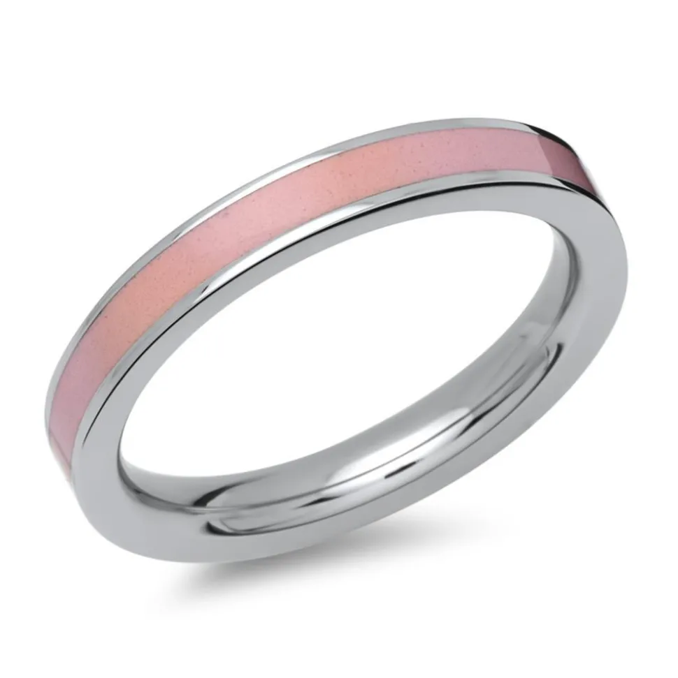 Absolutes Kombinationstalent – Stackring aus Edelstahl mit rosafarbener Emaille