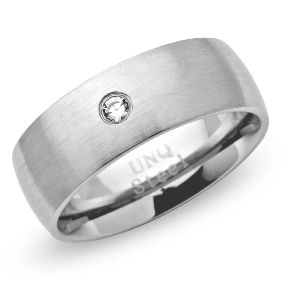 Hochwertiger Edelstahlring der Marke Unique Steel mit Zirkonia in 7mm Breite, die Oberfläche ist matt. Der Ring kann gegen einen Aufpreis von Innen graviert werden.