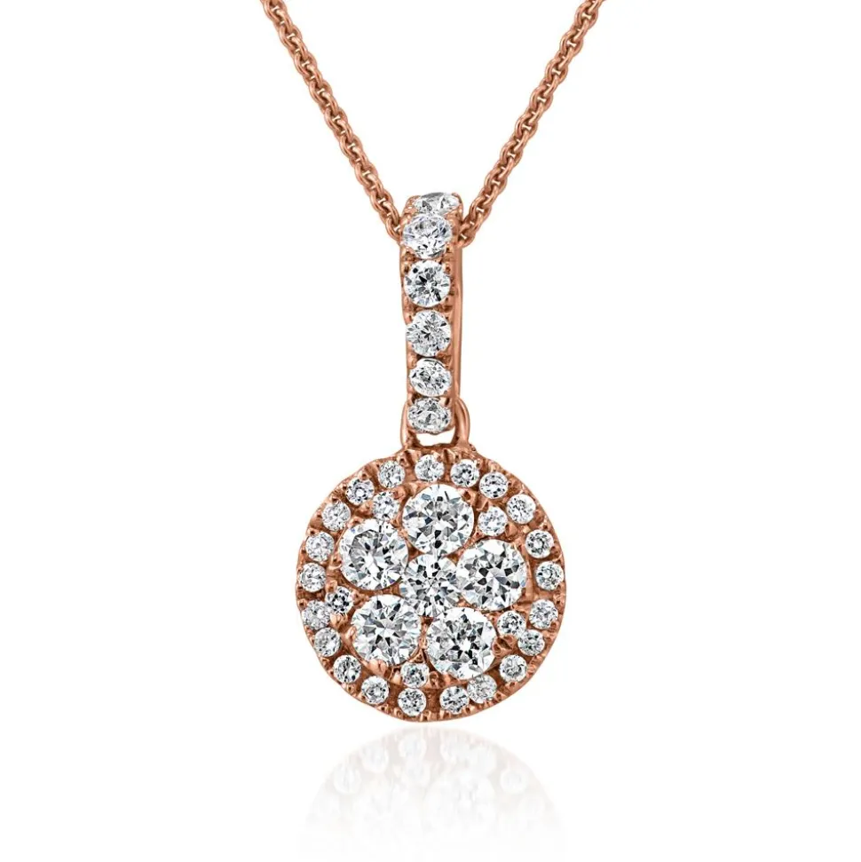 Dieser runde Halo-Anhänger für Damen setzt einen eleganten Akzent in jedem Outfit. Der Damenanhänger aus Roségold verfügt über einen Diamantbesatz aus 38 laborgezüchteten Diamanten. Diese weisen ein Gesamtgewicht von etwa 0,39 ct. auf und zeichnen sich durch eine hervorragende Qualität aus (Farbe: D-F, Reinheit: VVS-VS). Das Pavé in der Mitte des Anhängers wird von einem Kranz aus weiteren Labordiamanten umgeben. Auch die Öse ist mit lab-grown Diamanten versehen. Da der Anhänger in zwei Legierungen erhältlich ist – entweder in 14-karätigem oder in 18-karätigem Roségold – lässt sich die bevorzugte Legierung über das Drop-down-Feld auswählen. Er ist mit verschiedenen Ketten kombinierbar.