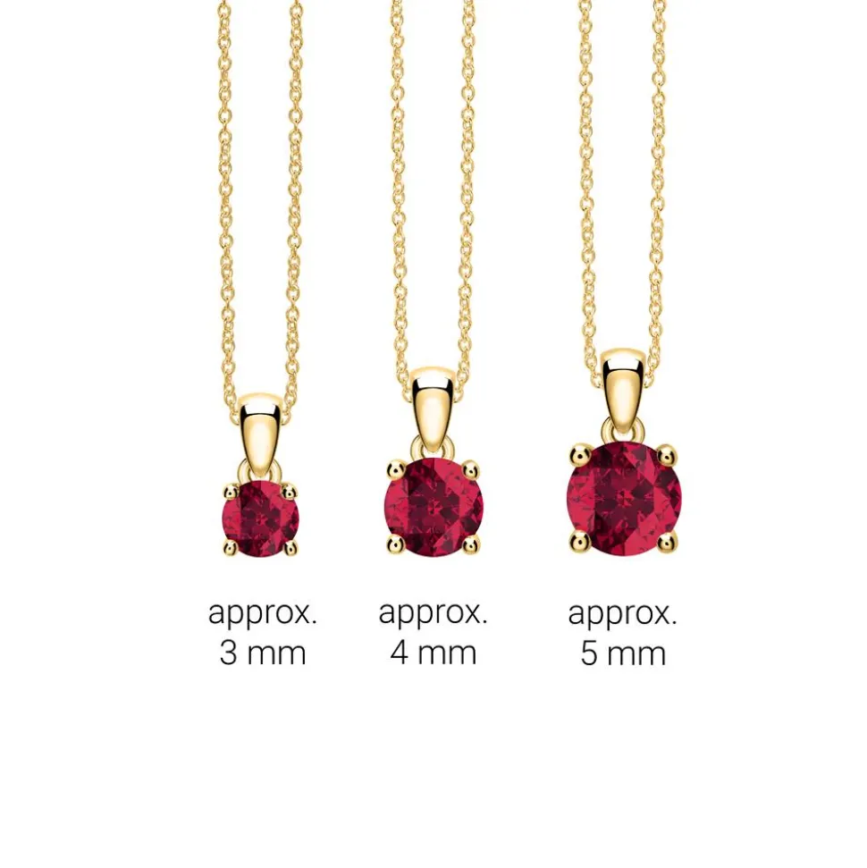 Traumhaft elegant – das ist dieser Kettenanhänger aus 585er Gold. In der 4-Krappenfassung sitzt ein Rubin im Stufenschliff. Dank der unterschiedlichen Steingrößen (-gewichte), die wir bei unseren Anhängern anbieten, kann man die für sich passende Größe wählen. Bitte hierzu das Auswahlfeld beachten.