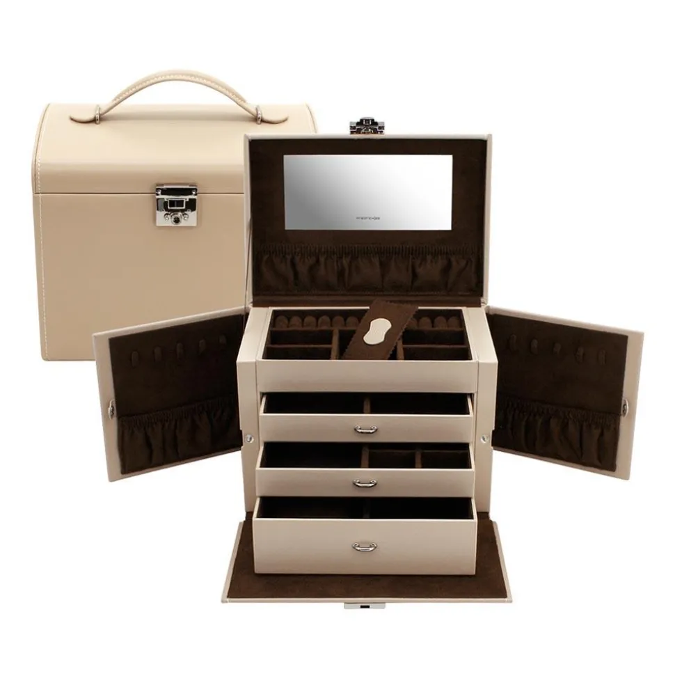 Elegantes Raumwunder – Schmuckkoffer aus hellbeigem Leder