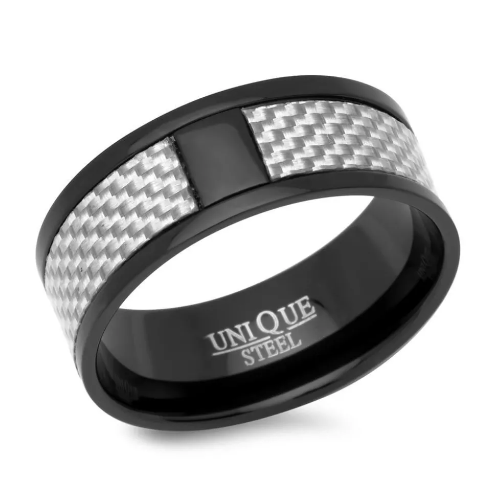 Hochwertiger Edelstahlring mit heller Carboneinlage. Der Ring wurde mit dem IBP-Verfahren (Ionic Black Plating) veredelt.