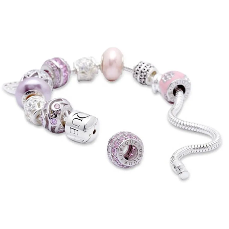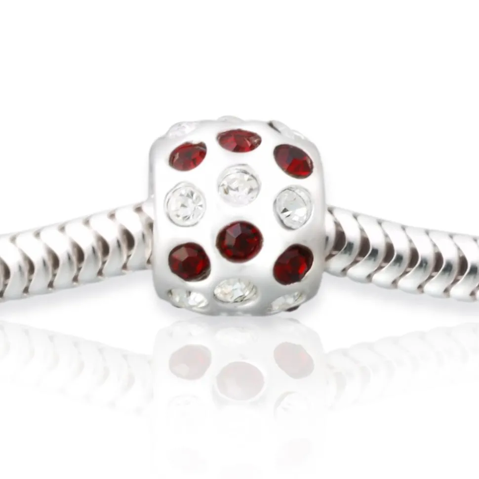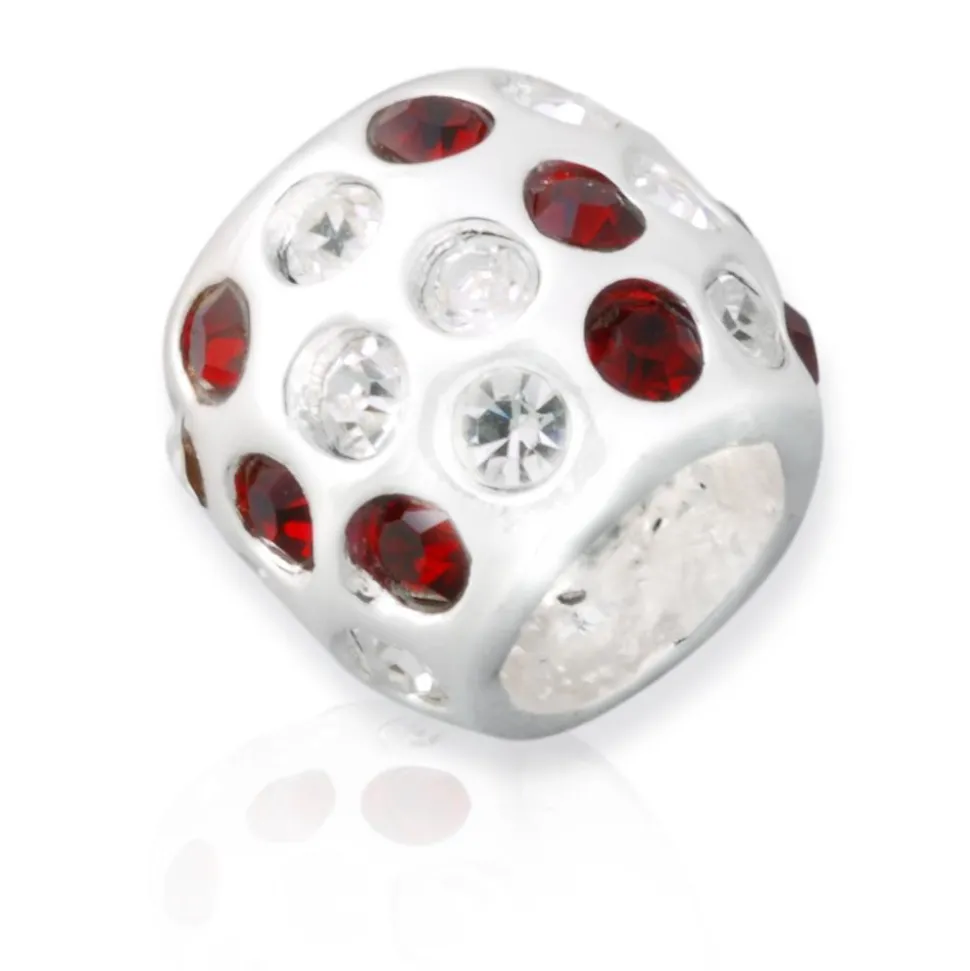 Wirkungsvoll – das ist dieser Bead. Er ist aus Sterlingsilber gefertigt und ist mit roten und weißen Zirkoniasteinen besetzt.