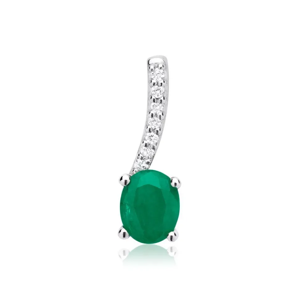 Der Smaragd (ca. 0,39 ct., 4 x 5 mm) im Ovalschliff ist nicht der einzige Eyecatcher dieses 14-karätigen Weißgold-Anhängers, denn er wird zudem von 7 funkelnden Brillanten (ca. 0,02 ct.; Farbe: G; Reinheit: SI) in Pavéfassung geziert. Der Kontrast zwischen dem hochglanzpolierten Weißgold, der weißen Diamanten und dem leuchtend grünen Smaragd harmoniert hervorragend mit dem zurückhaltenden Design des Anhängers. Zudem ist er rhodiniert und somit anlaufgeschützt. Wir legen bei unserem Diamantschmuck nicht nur Wert auf eine exzellente Qualität, sondern auch auf ethische Aspekte. Deshalb stammen unsere Diamanten ausschließlich aus konfliktfreien Quellen. Wenn Sie sich in das strahlende Grün des Smaragdes verliebt haben, finden Sie bei uns weitere Weißgold-Kreationen mit dem gleichen Steinbesatz.