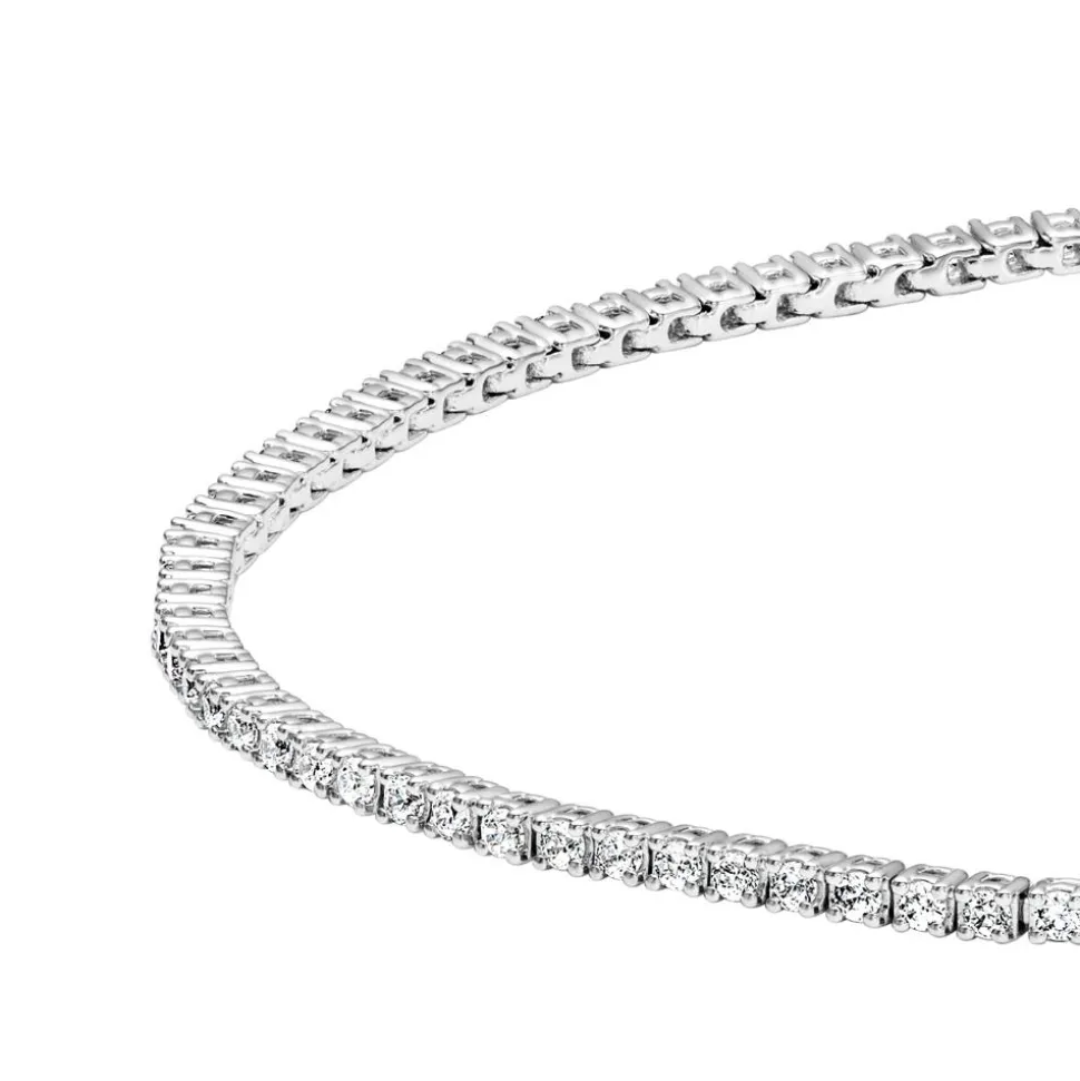 Absolut stilvoll – das ist dieses Rivière-Armband für Damen. Es ist in Weißgold (585er oder 750er) oder in 950er Platin erhältlich, welches über das praktische Drop-down-Feld auswählbar ist. Zum Funkeln gebracht wird das Armband von insgesamt 100 lab-grown Diamanten in bezaubernden Chatonfassungen. Die brillantgeschliffenen Diamanten wurden mit einem innovativen Verfahren im Labor hergestellt und besitzen die gleichen Eigenschaften wie natürliche Diamanten. Sie weisen eine Gesamtkaratzahl von insgesamt ca. 1,00 ct. auf und bestechen durch ihre erstklassige Qualität (Farbe: D-F, Reinheit: VVS-VS). Einen Nachweis über alle wertbestimmenden Eigenschaften der lab-grown Diamanten liefert das beigefügte Brilladia-Zertifikat. Für einen sicheren Halt am Handgelenk ist das Armband mit einem Clipverschluss und einer Sicherheitsacht versehen.