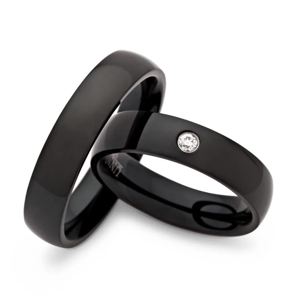Exklusive schwarze Edelstahl Eheringe der Marke Unique Steel in 5mm Breite. Die Ehering wurden mit dem IPB-Verfahren (Ionic Plating Black) veredelt. Die angebotenen Edelstahl Trauringe sind von Innen abgerundet, wodurch sie sich sehr angenehm tragen lassen. Das Angebot bezieht sich auf beide Eheringe und beinhaltet ein Gratis-Etui. Die Ringe können auch als Verlobungsringe, Partnerringe oder Freundschaftsringe getragen werden.