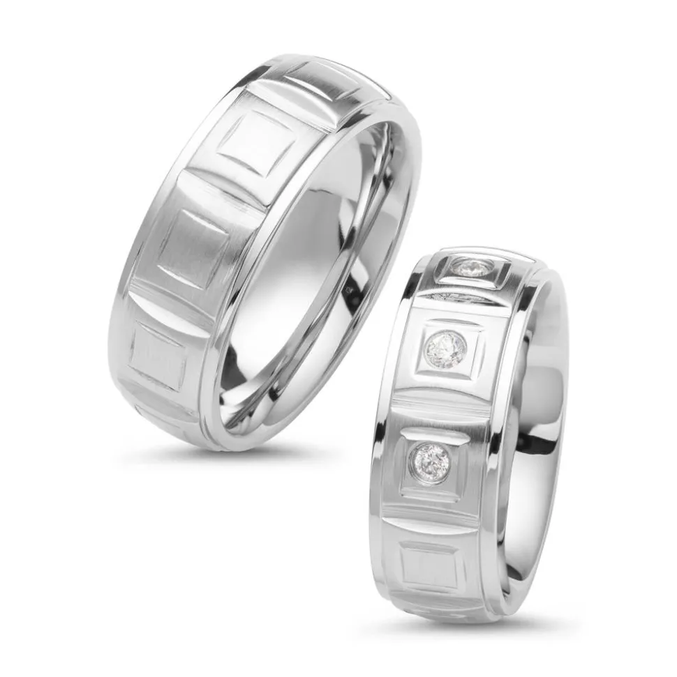 Exklusive Edelstahl Eheringe der Marke Unique Steel in 7mm Breite. Der Damenring ist zu 3/4 mit insgesamt 7 Zirkonia besetzt. Die angebotenen Edelstahl Trauringe sind von Innen abgerundet, wodurch sie sich sehr angenehm tragen lassen. Das Angebot bezieht sich auf beide Eheringe und beinhaltet ein Gratis-Etui. Die Ringe können auch als Verlobungsringe, Partnerringe oder Freundschaftsringe getragen werden.