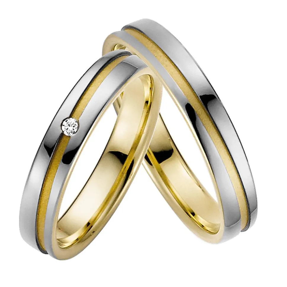 Ansprechendes Paar – Eheringe aus 585er Weiß- und Gelbgold von Rauschmayer